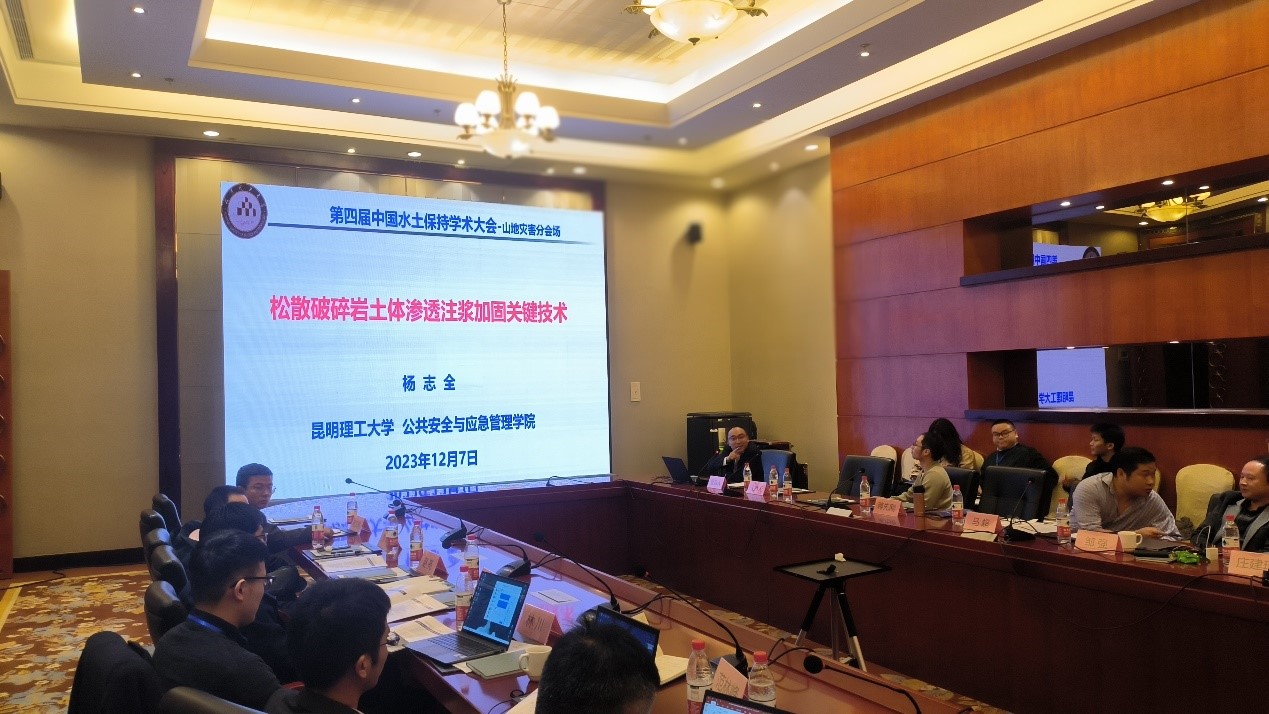 杨志全教授在“山地灾害分会场——山地灾害与智慧减灾”作题为“松散破碎岩土体渗透注浆加固关键技术”的主题报告。在设计“国家和云南省战略层面重大课题”、“关键科学问题和工程技术瓶颈”、“注浆加固理论技术”等方面,从地质灾害防治技术角度进行深入阐述。报告指出,未来地质灾害防治需要与人工智能、深度学习等前沿技术相结合,逐步迈向智慧减灾的目标。此外,杨教授介绍了学校和牛牛app
