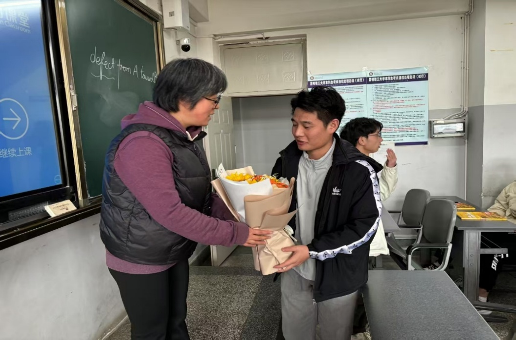 分工会组织开展“送您一朵小红花”活动,为女老师们送上了富有爱意的鲜花,同时也送上诚挚的祝福,感恩老师的精心培育和辛勤付出,展现了师生之间的深厚情谊。